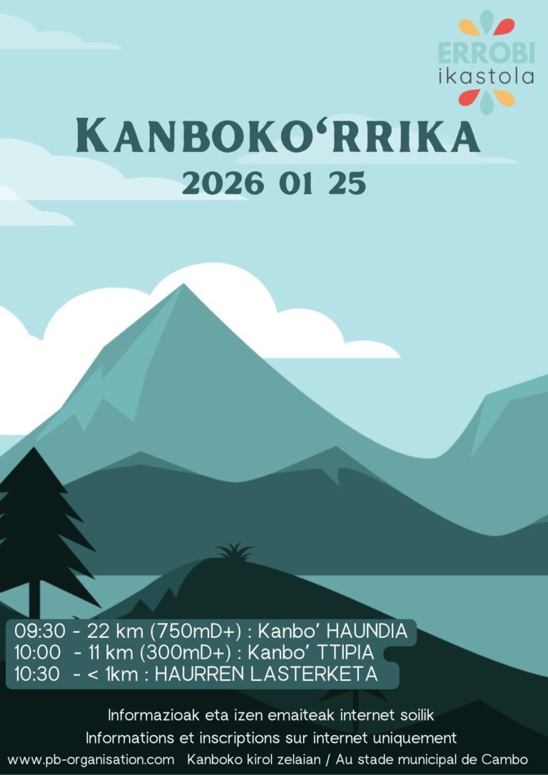 La « KANBOKO’RRIKA» est une épreuve de course pédestre chronométrée organisée par l’Ikastola Errobi, le 25 janvier à Cambo.